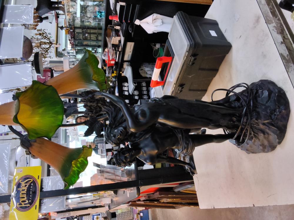 LAMPE 3 FEUX PÂTE DE VERRE STATUETTE EN RÉSINE HT 75CM