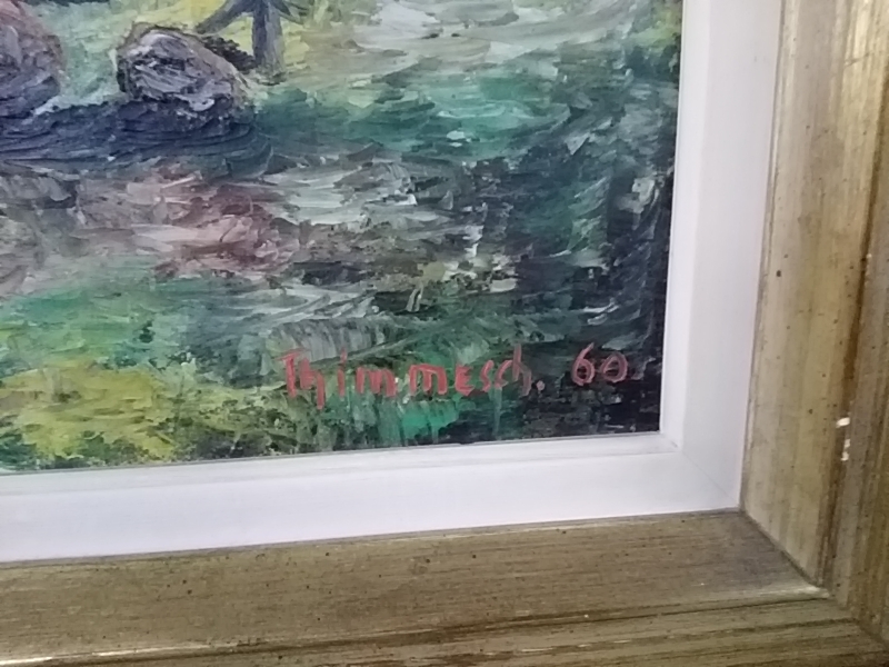 TABLEAU MONTAGNE CADRE DORÉ SIGNÉ THIMMESCH 100 X 89CM