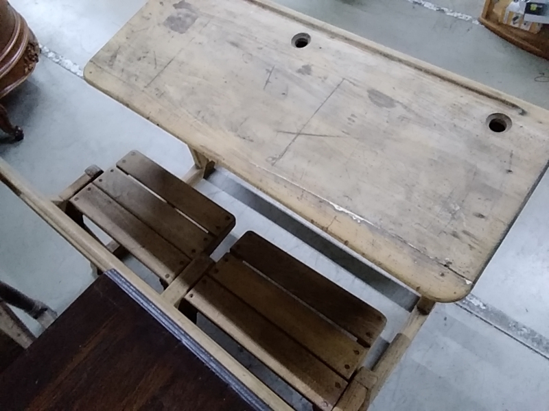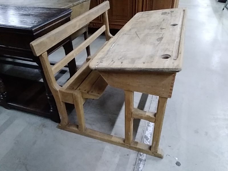 BANC D’ÉCOLE ANCIEN ENTIÈREMENT EN BOIS MASSIF