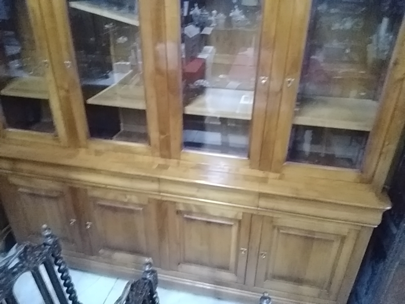 BIBLIOTHÈQUE MERISIER 4 PORTES VITRÉES 4 PORTES 4 TIROIRS