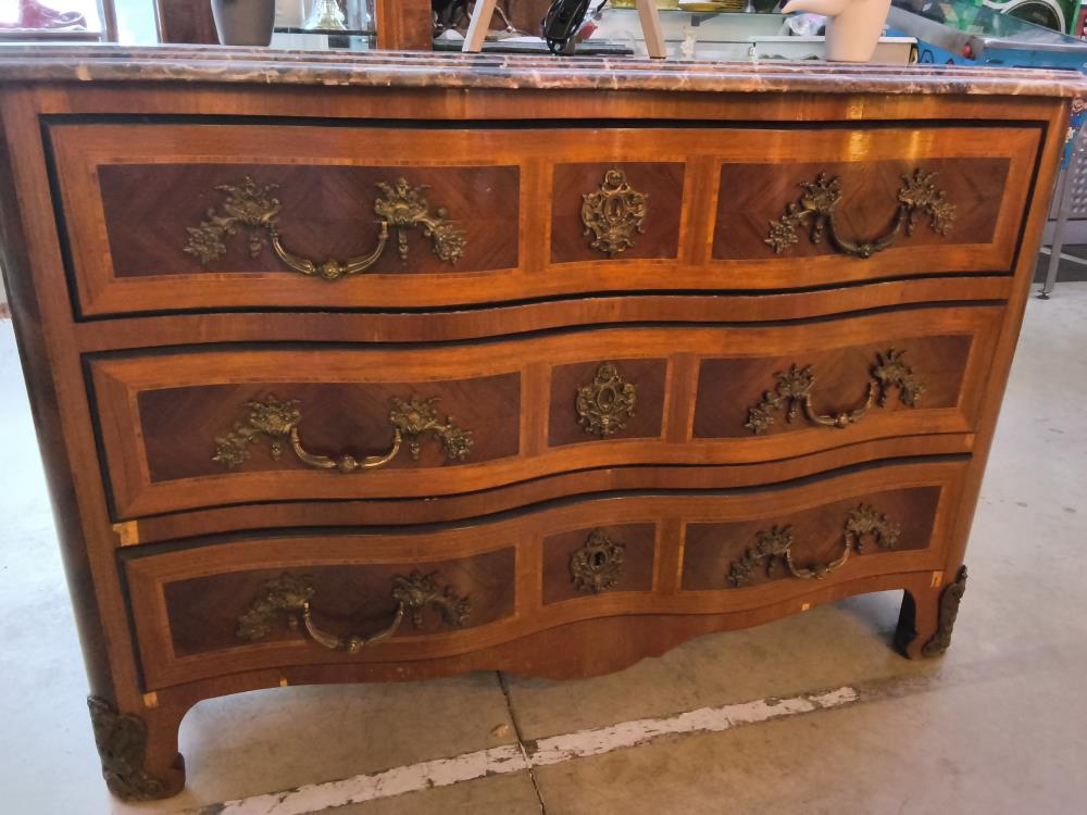 COMMODE ANCIENNE MARQUETERIE 3 TIROIRS MARBRE