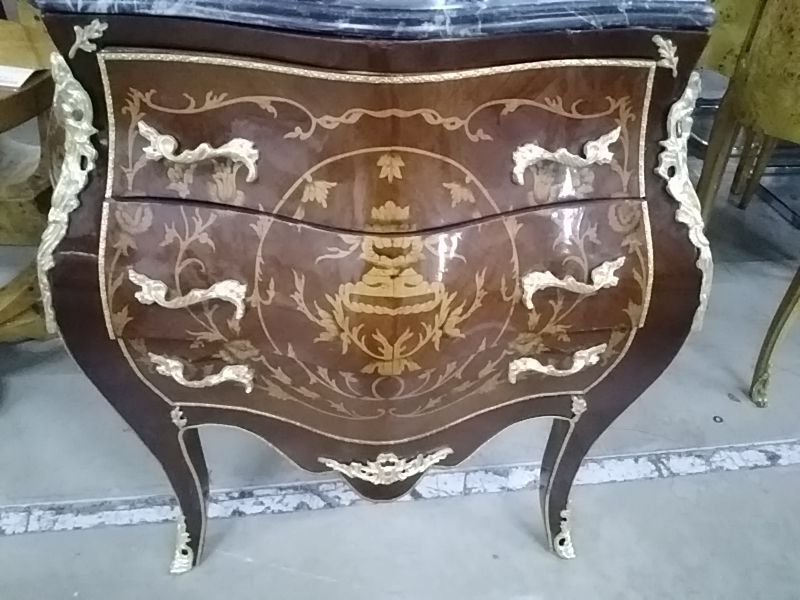 COMMODE LOUIS XV MARQUETERIE MARBRE 3 TIROIRS COPIE