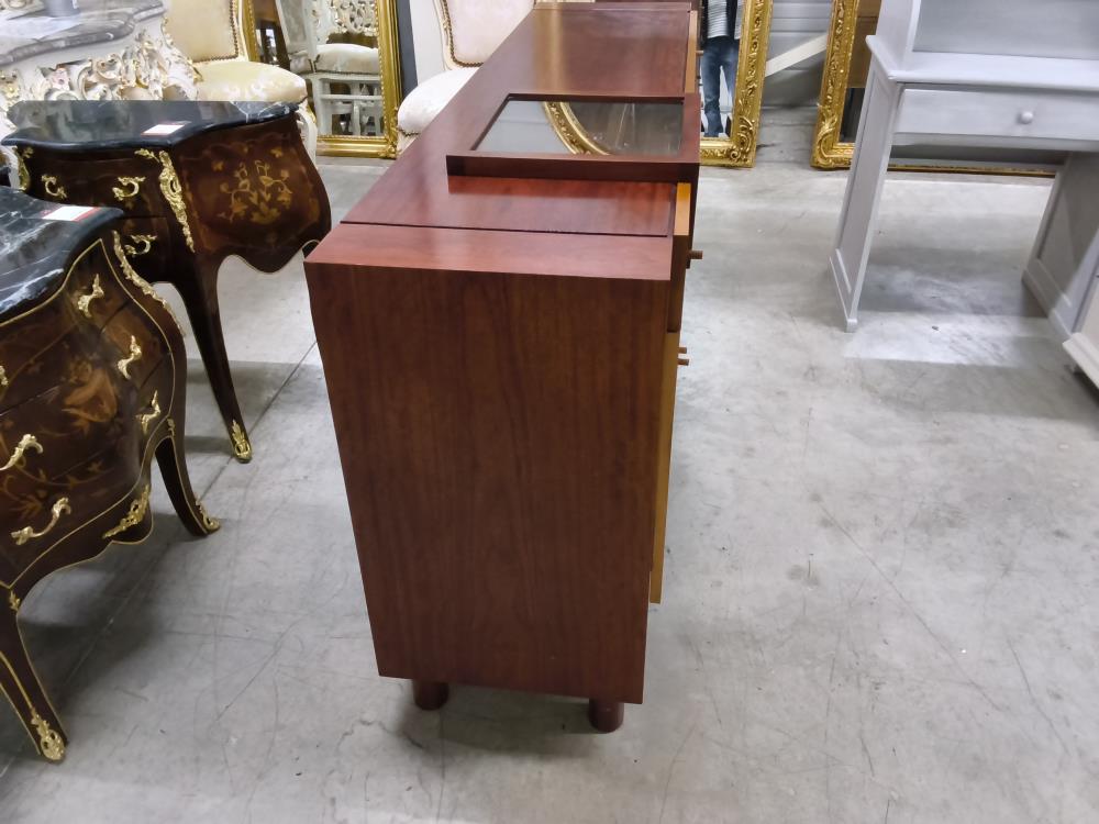 ENFILAGE ACAJOU 4 PORTES 3 TIROIRS 1 CASIER VERRE
