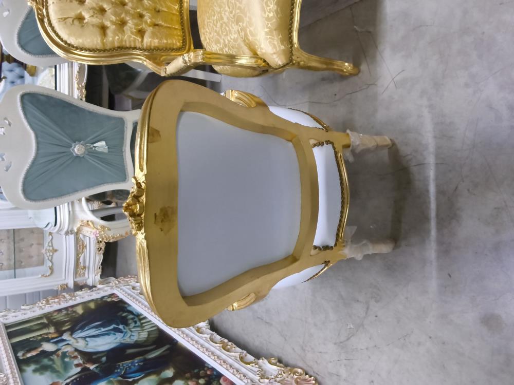 FAUTEUIL BAROQUE PETIT MODÈLE DORÉ SIMILI BLANC