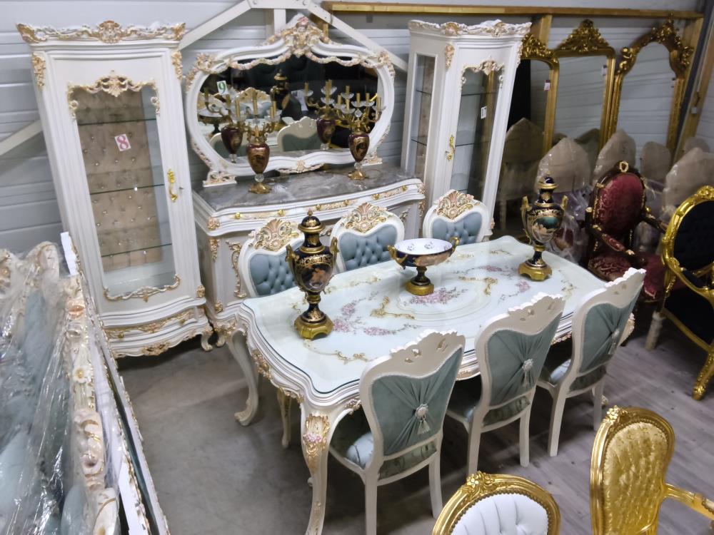 SALLE À MANGER COMPLÈTE ENFILADE MIROIR 2 VITRINES TABLE ET 6 CHAISES