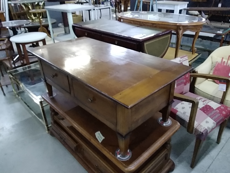 TABLE BASSE 2 TIROIRS TRAVERSANTS DANS L’ETAT ACAJOU