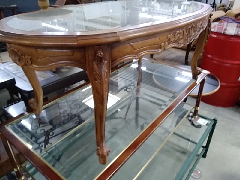 TABLE BASSE OVALE MERISIER CANAGE VERRE